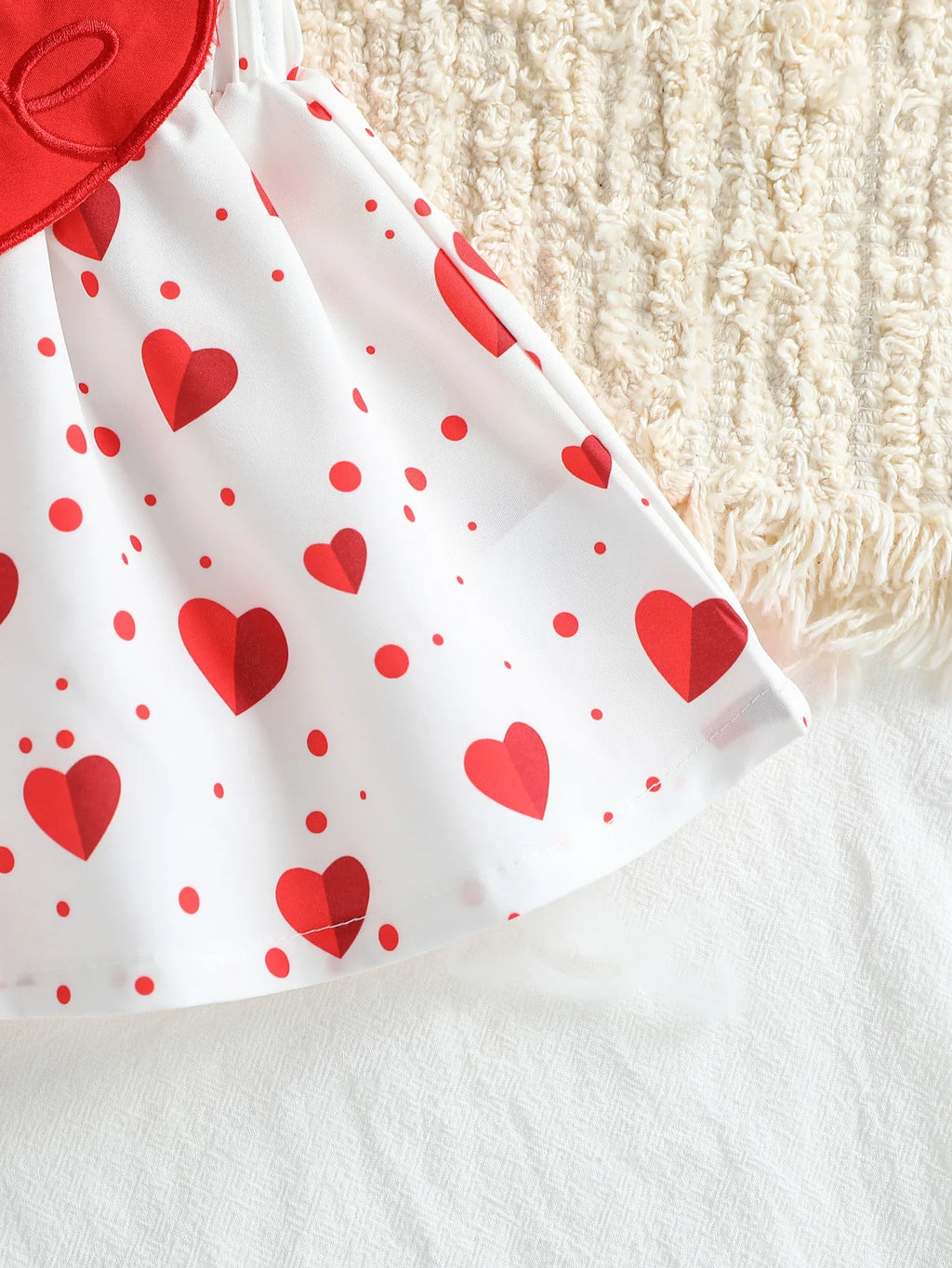 Composto por um macacão de manga longa, uma saia suspensa com estampa de corações e uma adorável bandana, este conjunto transforma qualquer dia em um momento especial.