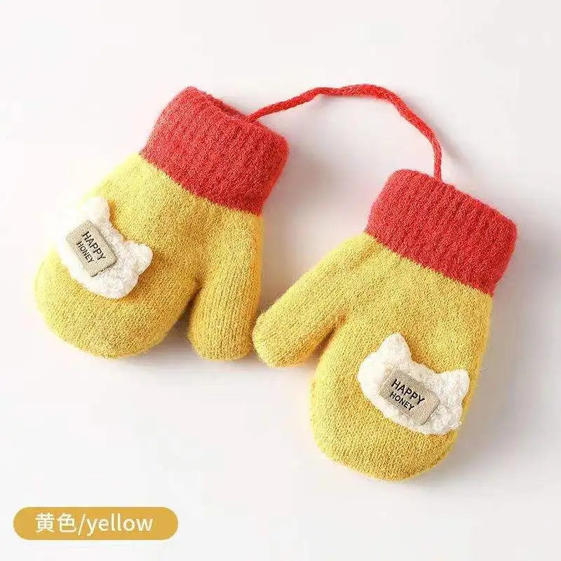Luvas Infantis de Pelúcia Quentes com Cordão