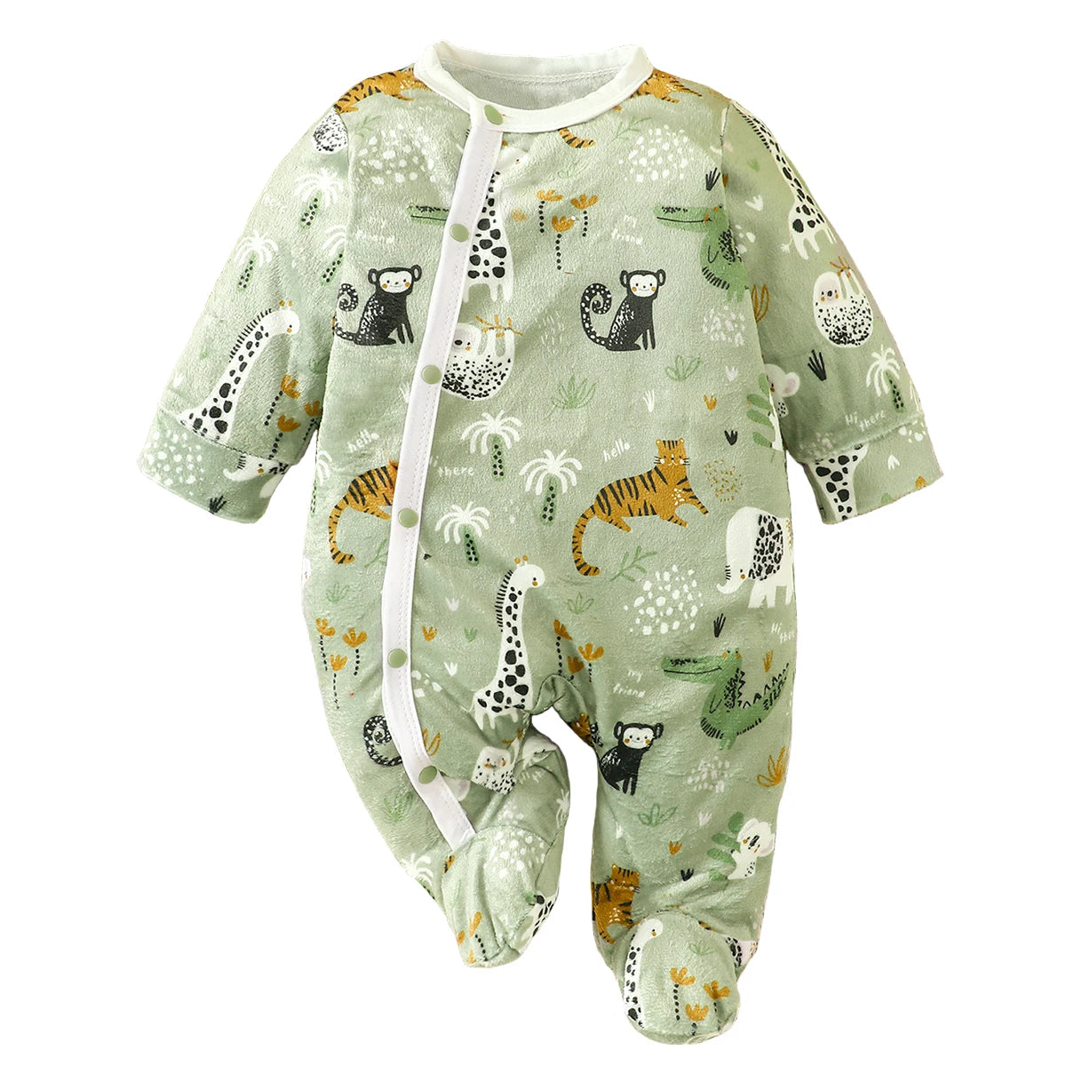 Macacão Infantil Zoológico com Pés para Bebê 1-18m